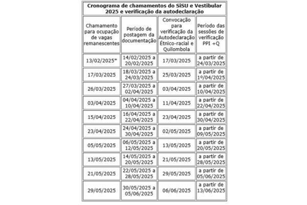 Confira o calendário completo das chamadas de vagas remanescentes da UFRGS: