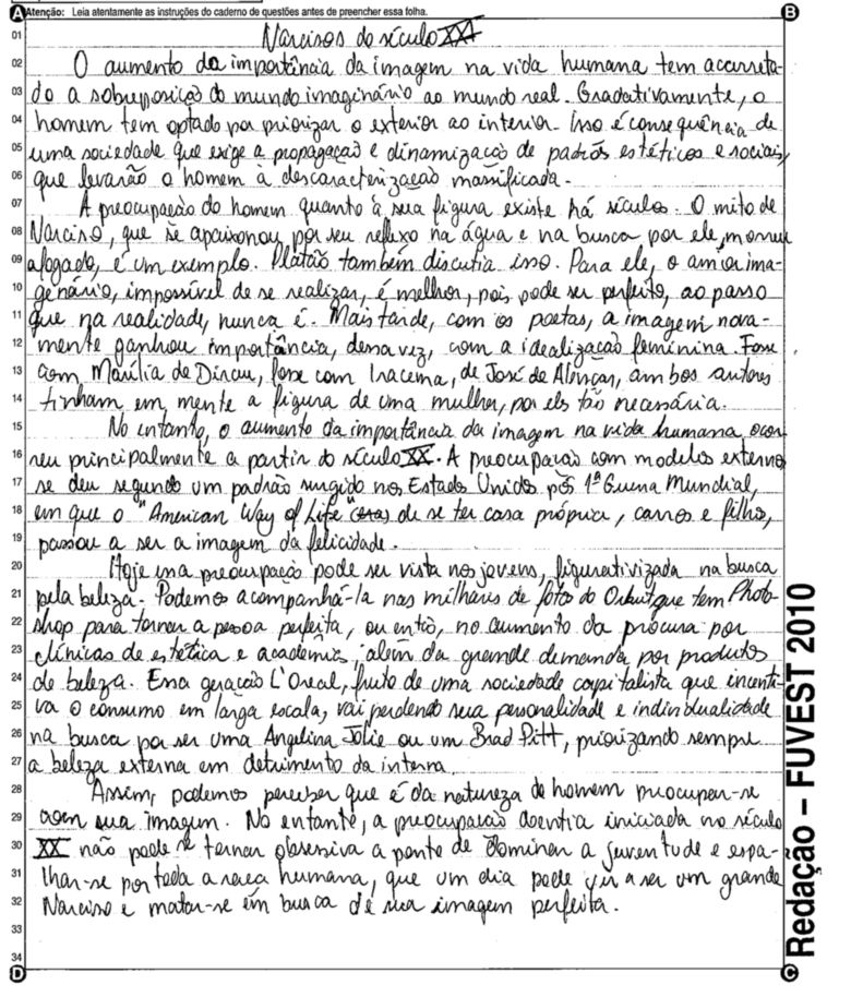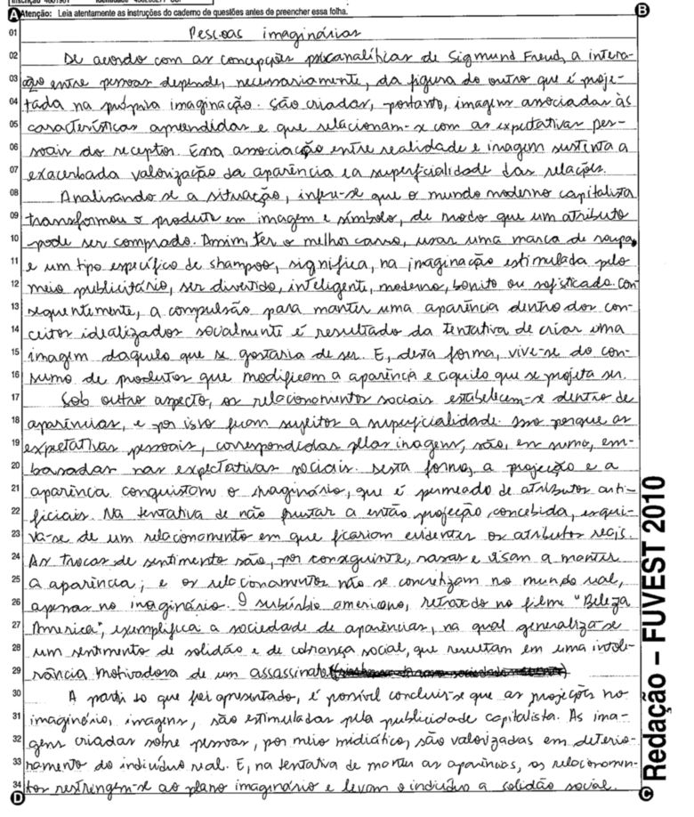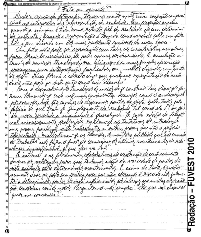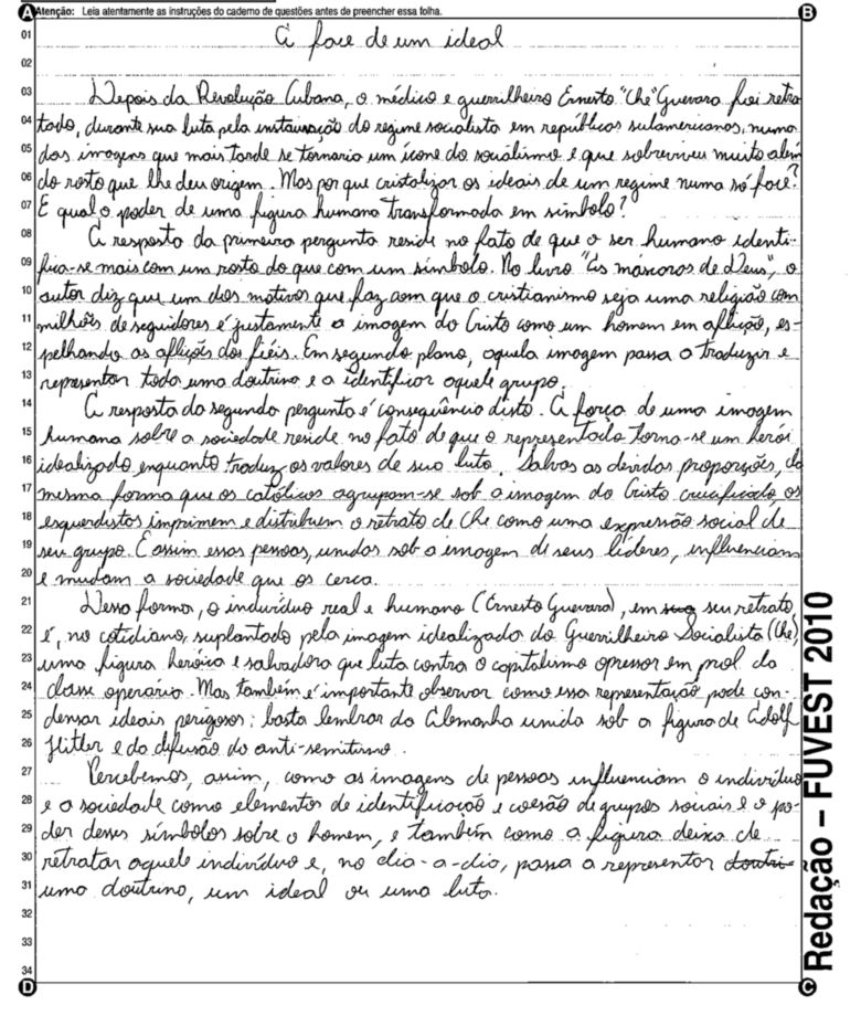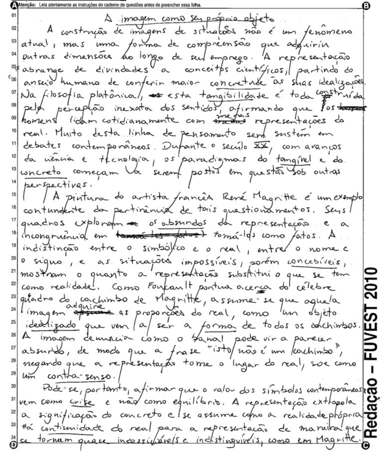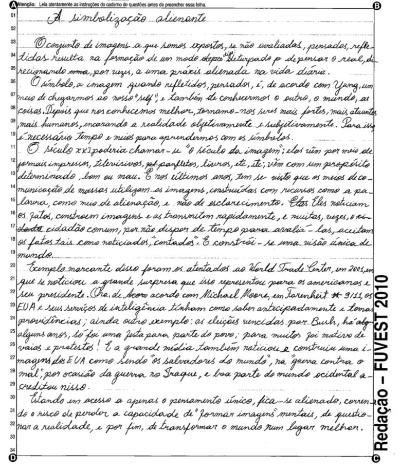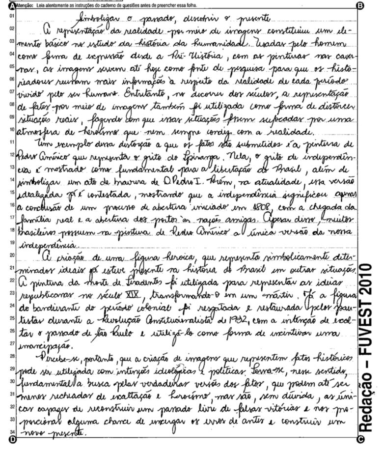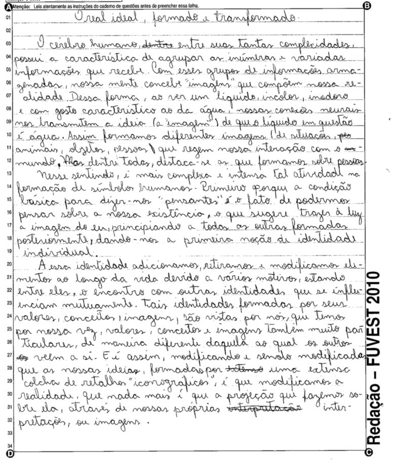 A Fuvest (Fundação Universitária para o Vestibular) liberou nesta terça-feira, 11, as 53 melhores redações do Vestibular 2010. A instituição seleciona alunos da Universidade de São Paulo (USP), da Faculdade de Ciências Médicas da Santa Casa de São Paulo e da Academia da Polícia Militar do Estado de São Paulo. O tema foi "O mundo por imagens".