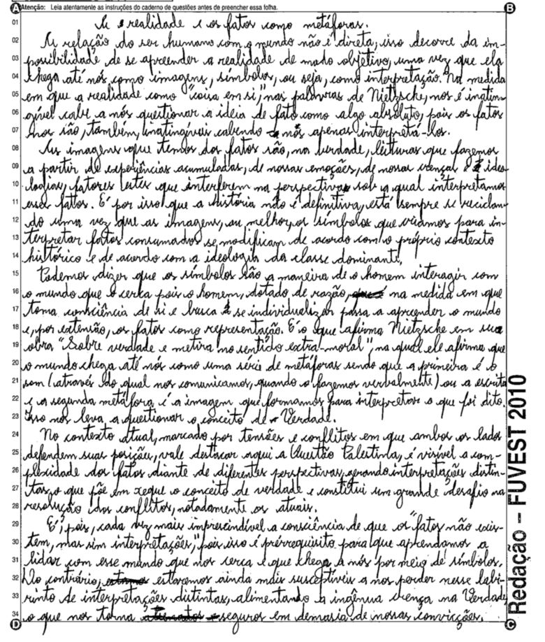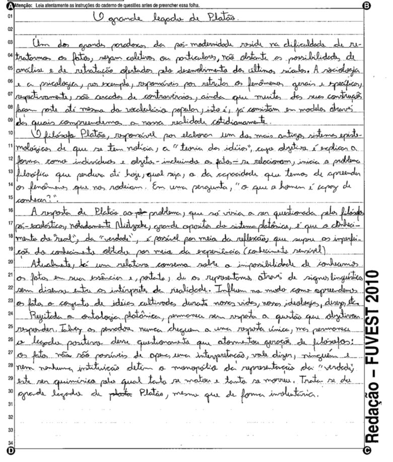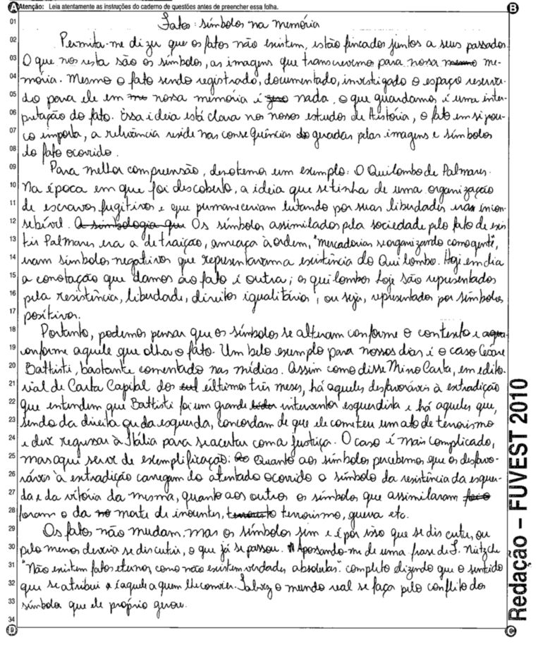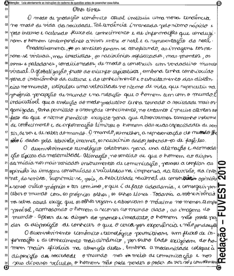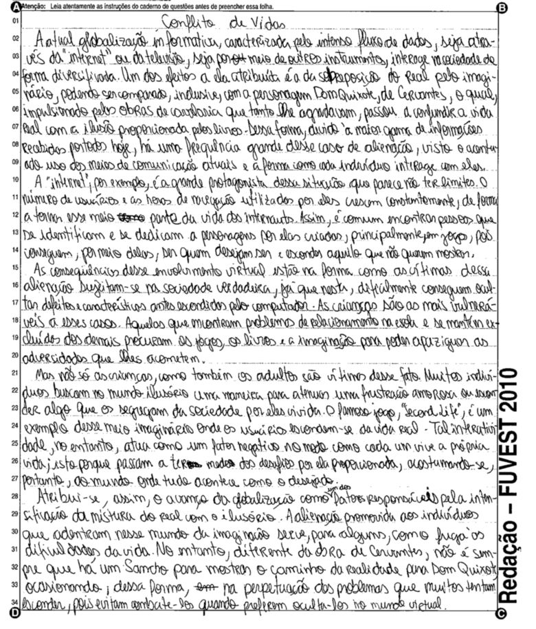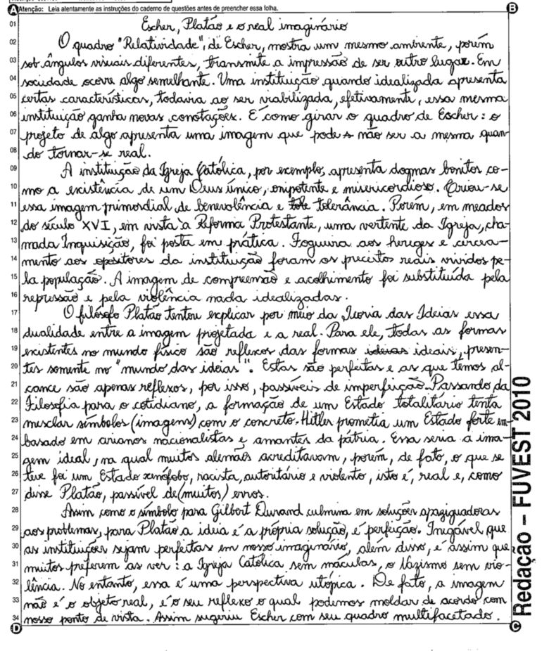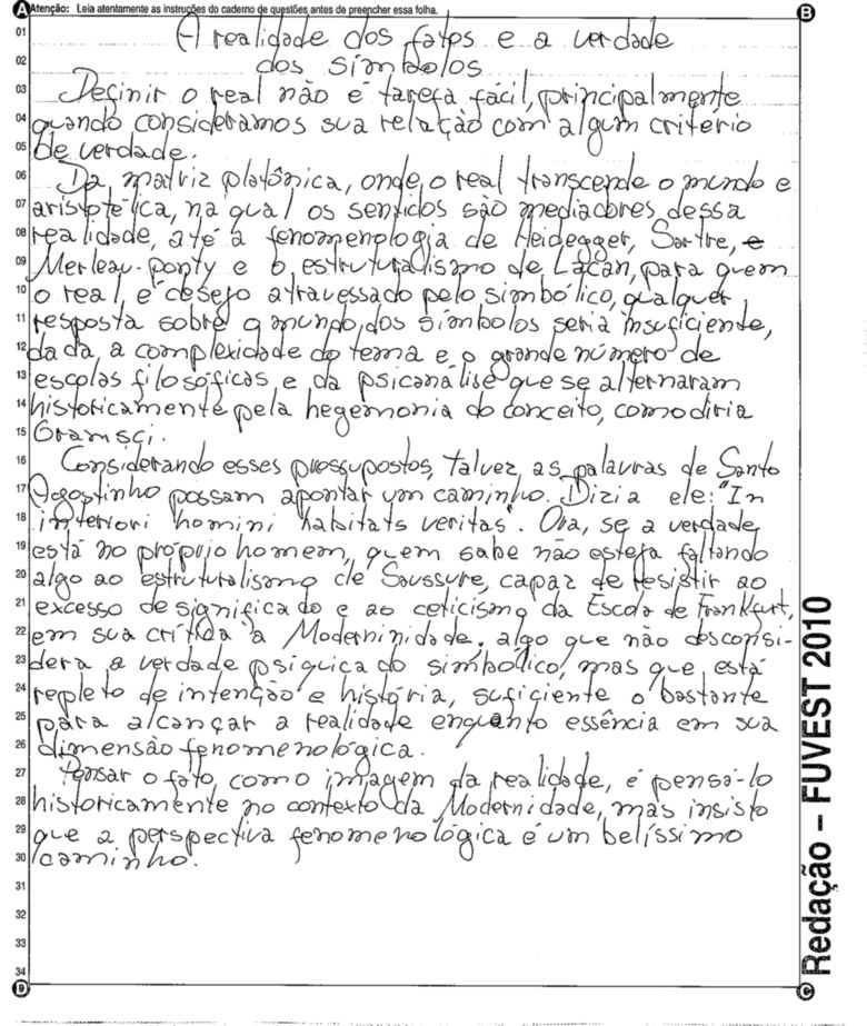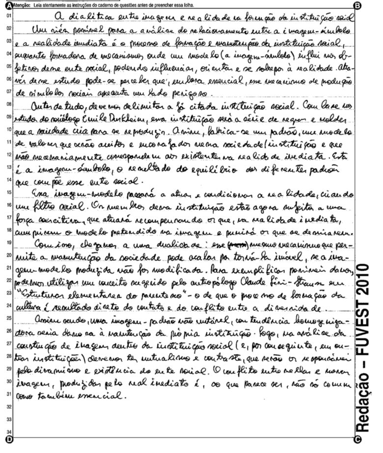 A Fuvest (Fundação Universitária para o Vestibular) liberou nesta terça-feira, 11, as 53 melhores redações do Vestibular 2010. A instituição seleciona alunos da Universidade de São Paulo (USP), da Faculdade de Ciências Médicas da Santa Casa de São Paulo e da Academia da Polícia Militar do Estado de São Paulo. O tema foi "O mundo por imagens".